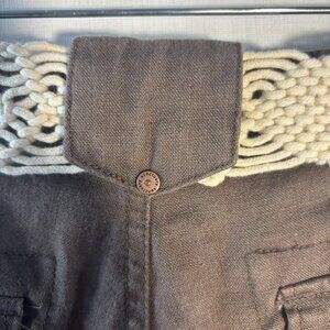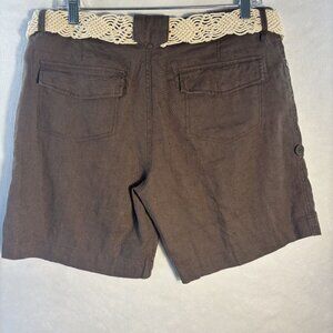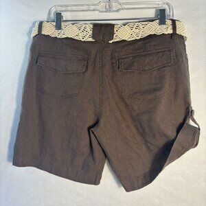 Womens Brown Linen Blend Shorts With Crochet Waistband & Drawstring Detail