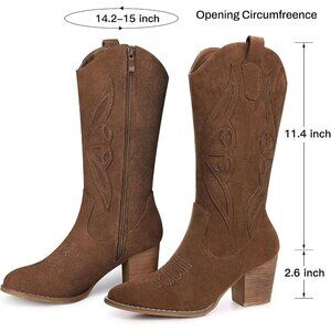⚡Women's Brown Mid Calf Cowgirl Boots Western Embroidered Country High Heel