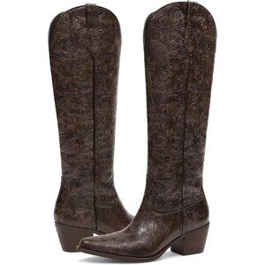 ⚡Womens Brown Polyurethane Cowboy Knee High Pointed Toe Chunky Heel Boots
