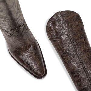 Classic Western Style: These Retro Knee-high boots feature intricate floral embossed and graceful curves, blending vintage cowgirl charm with modern flair