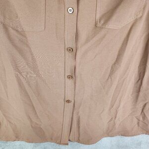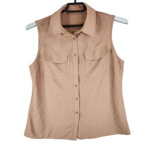 Women's Brown Shirt Top Button-Up Sleeveless 100% Polyester Pockets Size XL
