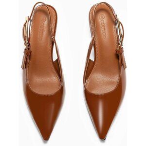 Women's Brown Slingback Kitten Heels Closed Pointed Toe Pumps Buckle Strap