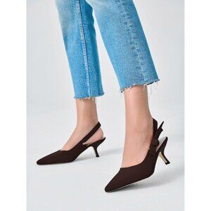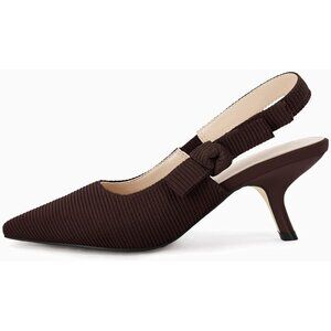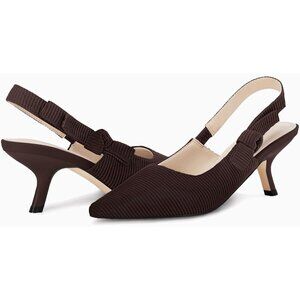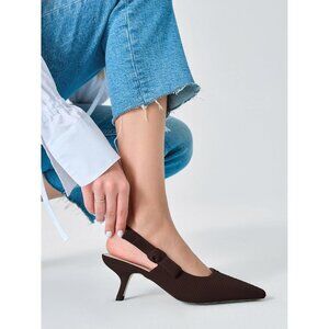 ⚡Women's Brown Slingback Kitten Heels Pointed Toe Bowknot Knitted Slip On