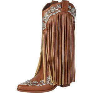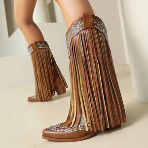 Western Country Boots: Cute Cowgirl Boots, Country Style Fringe on Shaft and Rivets on the Opening and Upper. Step Up Your Style With the Classic and Fashion Tassels Cowboy Boots for Women For a Truly Standout.