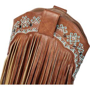 Embroidered Fringe Cowboy Boots:A Cowboy Boot that Embodies the Spirit of the West with a Vibrant Twist. A Lengthy Fringe Overlay Indicates this Embroidered Leather Boot Was Born to Move and Shake,Blending Traditional Craftsmanship with Modern Style for a Bold Cowgirl Look.
