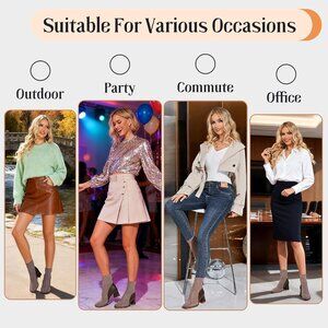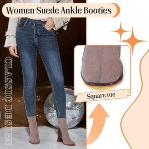 Elevate your style effortlessly with our chic women's ankle boots featuring a 2.36'' low chunky heel, comfortable suede upper, soft latex insole, and eye-catching two-color patchwork.