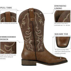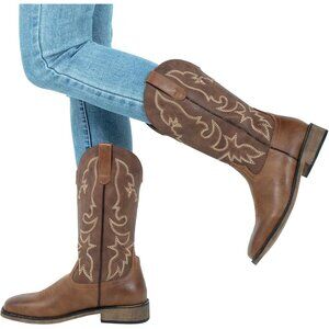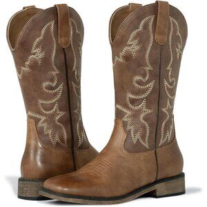 Show off your western style in these stylish & cute women square toe cowboy boots!(warm notice: toe area is slightly wider and square-shaped; boots run small, go up a size if concerned about tightness)
