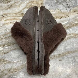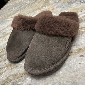 Women’s Brown Suede Leather sheepskin lining slippers Large