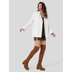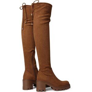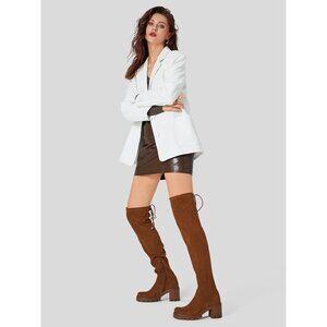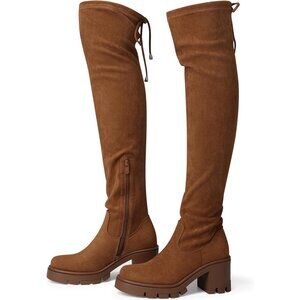 ⚡Women's Brown Thigh High Boot 3 Inch Chunky Heel Tall Boot Platform Side Zipper
