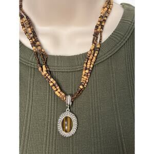 Women's Brown Tigers Eye Pendant Seed Bead Necklace 90's Y2K Statement Basic