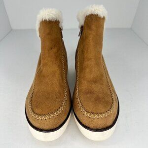 Womens Brown Winter Suede Side Zip Fur Lining Ankle Non-Slip Size 7 Snow Boots