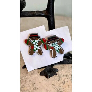 Womens Brown Wooden Vintage Stud Hand Painted Earrings