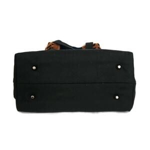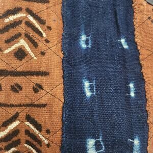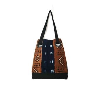 Black Canvas straps and bottom, Brown/Navy Blue Woven body, Colorful lining depicting ethnic dancers