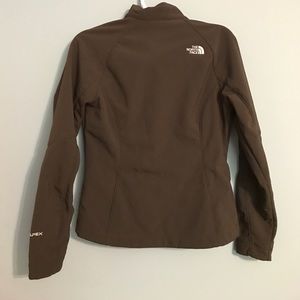 I believe it is the Apex Women's jacket. Work maybe 5 times. Small mark on the front that is hardly noticeable pictured in the second photo, zipper, pockets, fleece like interior