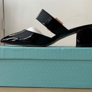 Women's Buckle Patent Solid Pointed Toe Chunky Low Heel Mules --Never Worn!