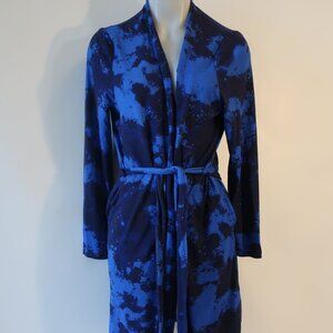 Womens Bumble Bella by Jill Martin Blue Navy Watercolor Print Jersey Spa Robe M