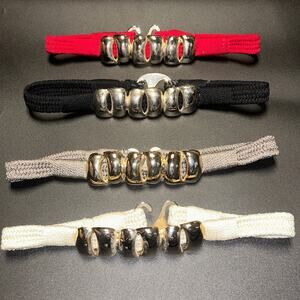 Women's Bundle Set of 4 Red Black White Brown Gold-Tone Hardware Belts