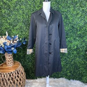 Women’s Burberry Black Trench Coat with Fur Trim Collar Nova Check Cuffs S/XL
