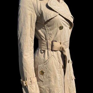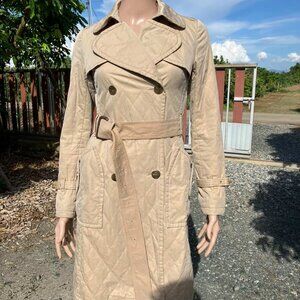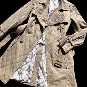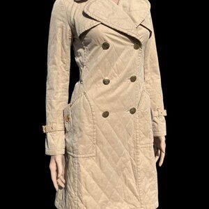 Women's Burberry London Blue Label Tan Lightweight Quilted Trench Coat Size 38 M