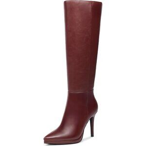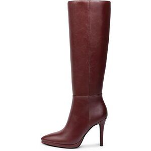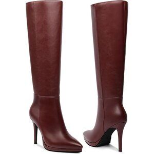 ⚡ Women's Burgundy Classic Stilettos Heel Pointed Toe platform Boots High Heel