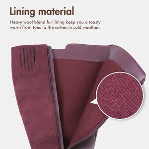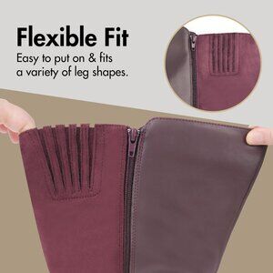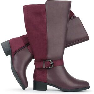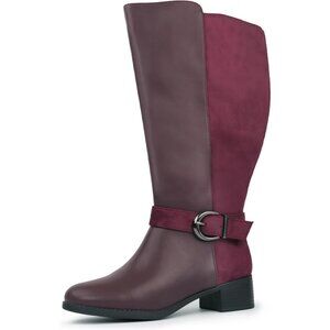 ⚡Women's Burgundy Comfort Extra Wide Calf Pull On Side Zipper Knee High Boots