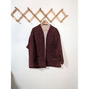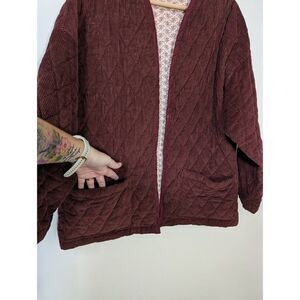 Women's Burgundy Corduroy Quilted Vintage Style Open Front Jacket