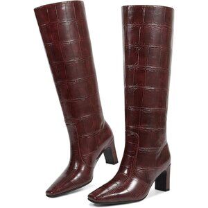 Classy And Sassy Boots: The crocodile knee high boots are a stylish addition to any wardrobe. The elegant design, square toe, and block heel give these knee high boots a fashionable look
