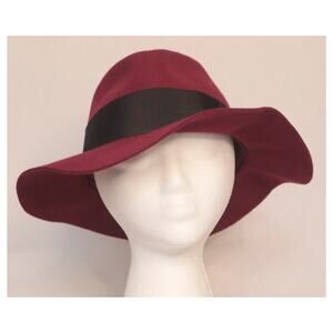Womens Burgundy Fedora Hat Wide Brim Black Ribbon Band