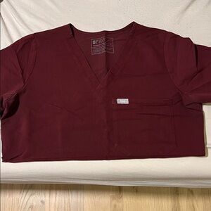 Stylish burgundy scrub top with one pocket. Perfect for medical professionals.