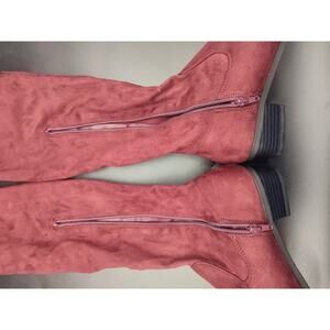 Women’s Burgundy Over-the-Knee Boots Size 8.5 Suede-Look Zip Tie Back Block Heel