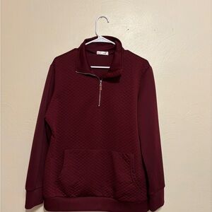 Stay cozy and stylish with this burgundy quarter-zip sweatshirt. Perfect for casual outings or lounging at home.