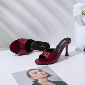 Burgundy Mules Heels: Heel height is 3.93"/10cm, the high heels can extend the lines of your legs visually, meanwhile keep your walking steady and comfy.