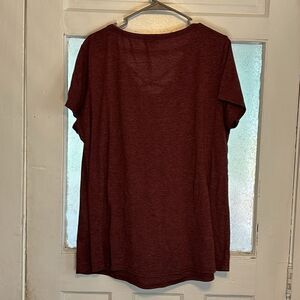 Women’s Burgundy Red Short Sleeve Tshirt with criss cross on chest size XXL