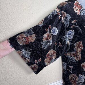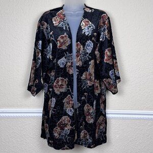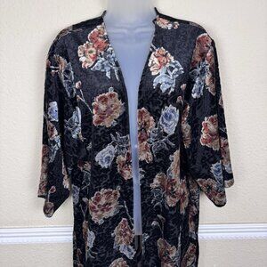 Womens Burnout Velvet Open Front Kimono Sz XL Whimsigoth Boho Dark Floral Montea
