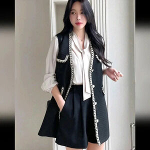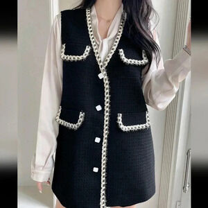 Women's Business Casual Knitted Sleeveless Jacket With Strap Patchwork