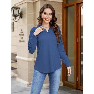 - Basic long sleeve shirts for women, women's tops dressy casual, blouses for women, business casual tops for women, plus size tops for women, floral tops for women, cute pleated in back, curved hem, with pockets, loose fit style, classy and trendy.