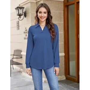 Women's Business Casual Tops Collared V Neck Blue 3XL