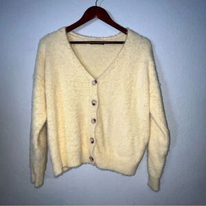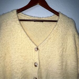 Women's Butter Yellow Soft Fuzzy Cardigan Sweater