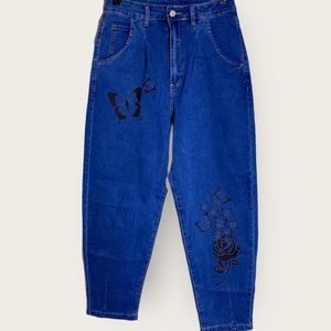 Tags: Butterfly floral print, Casual, classic, denim, high waist, loose fit, balloon tapered jeans, mom jeans, relax fit