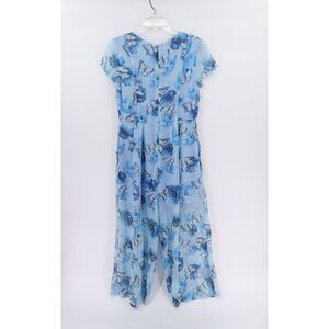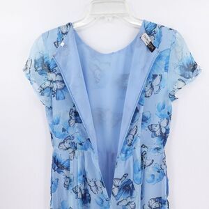 Womens Butterfly Sheer Jumpsuit XL Blue Chiffon Wide Leg Whimsy Fairy Mystical