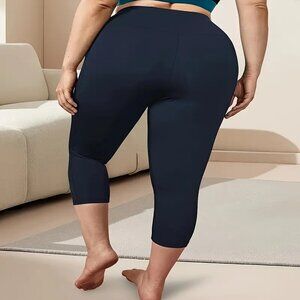 Women's Buttery Soft Capri Yoga Leggings w/Pockets 1X-3X Navy