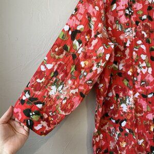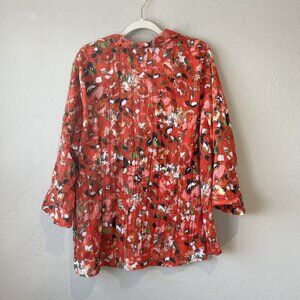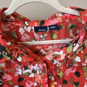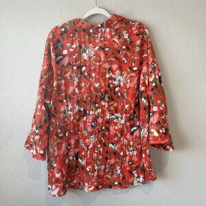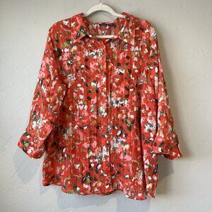 Women’s Button Down Blouse Floral 2x Watercolor Abstract Red Breathable Career