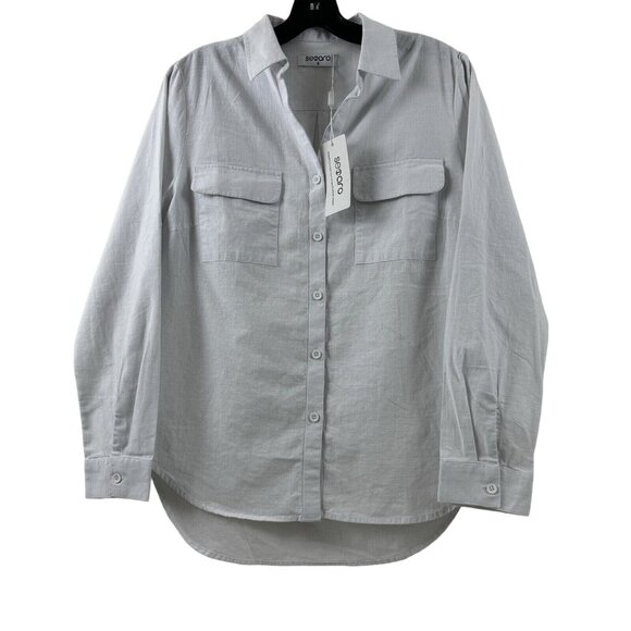 Womens Button Down Long Sleeve Shirts Casual V Neck Cotton Linen Roll Sleeve S