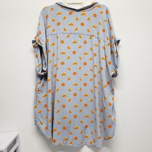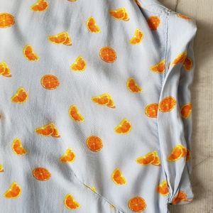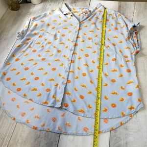 Womens Button Front Short Sleeve Shirt 1X Orange Print Casual Versatile Top