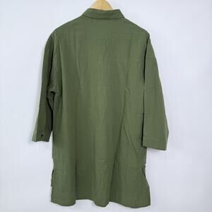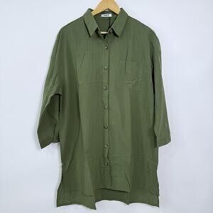 Womens Button Up Tunic Top Size L Army Green Oversized Lightweight Lagenlook