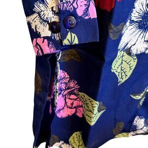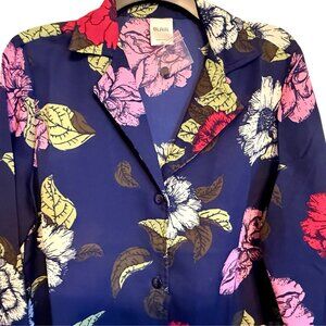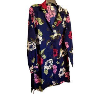 This long button up Navy Blouse is so pretty. I love the colorful flowers. It is sheer. New and never been worn.