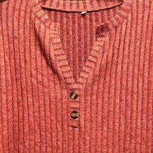 Elevate your casual wardrobe with this ribbed top. The rich rust color and button details add a stylish touch to any outfit. NWOT
