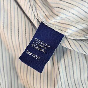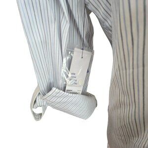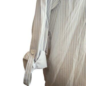 Womens Button-Up Collared Shirt White Blue & Black Pinstripes Size 3X JJ4040