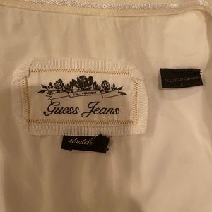 White button-down shirt with pleated detail on front. Darted at the hips and very flattering on. Just dry cleaned. Size small. Guess Jeans brand.