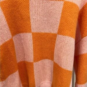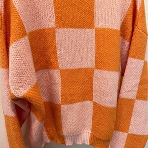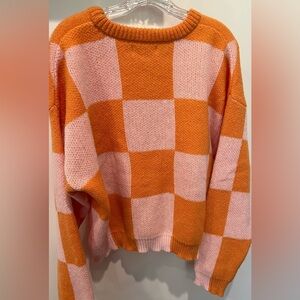 Women’s By Together Orange and Pink Checkered Sweater in Size Large